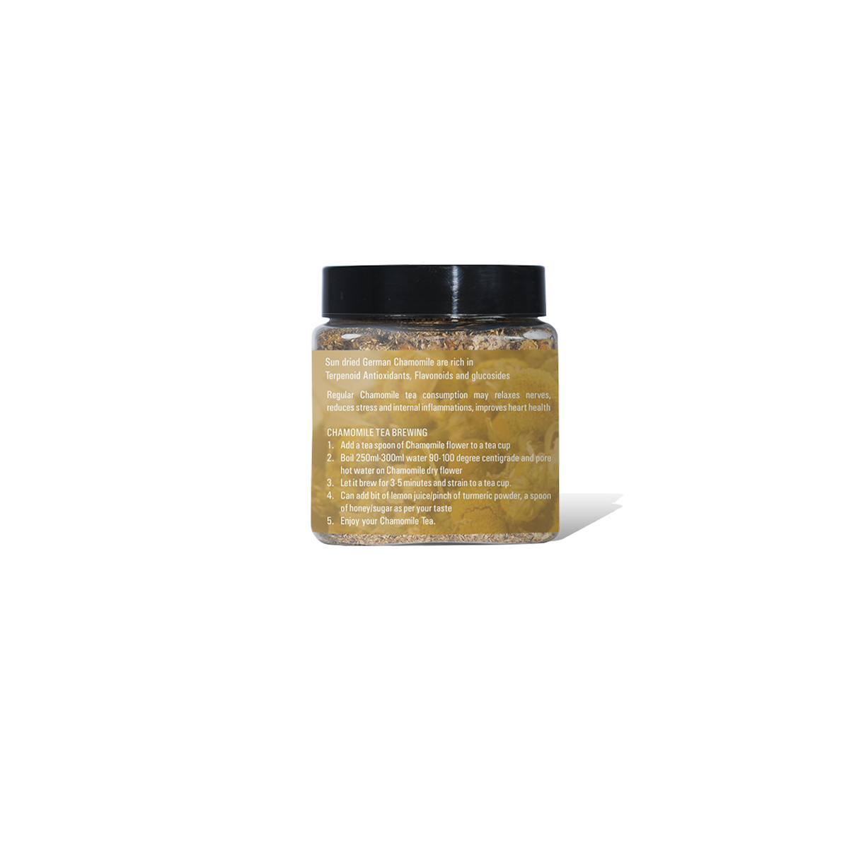 Chamomile Flower Tea is made from carefully selected chamomile blossoms, valued for their soothing and calming effects. This caffeine-free herbal tea supports relaxation and promotes restful sleep, making it an ideal choice for winding down after a busy day. Its gentle floral aroma and mild flavor provide a comforting experience, while traditional use highlights its potential benefits for digestive health and stress relief.